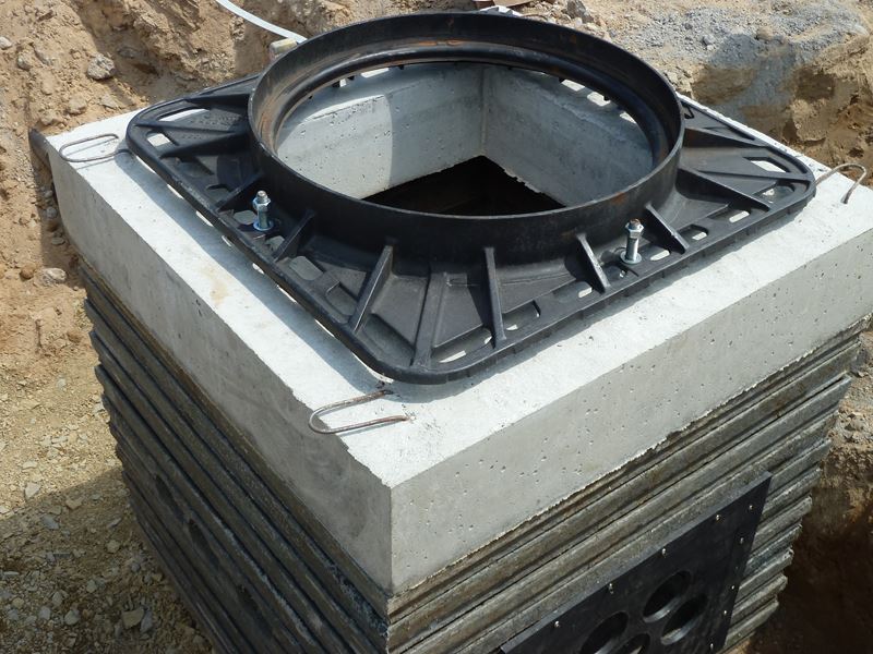 Korpus studni wykonany jest z wytrzymałego tworzywa Polipit (polietylen, polipropylen, poliwęglan), które zapewnia odporność na obciążenia do 90 ton. Dzięki temu nasze studnie mogą być bezpiecznie stosowane w miejscach o dużym natężeniu ruchu, np. na płytach postojowych czy drogach kołowania.