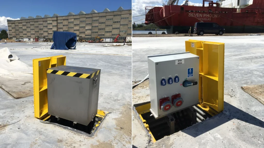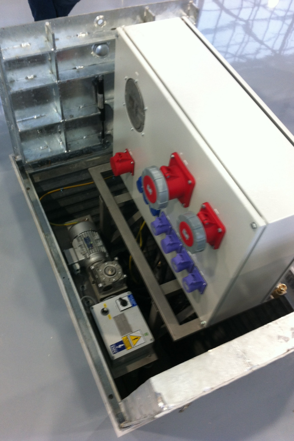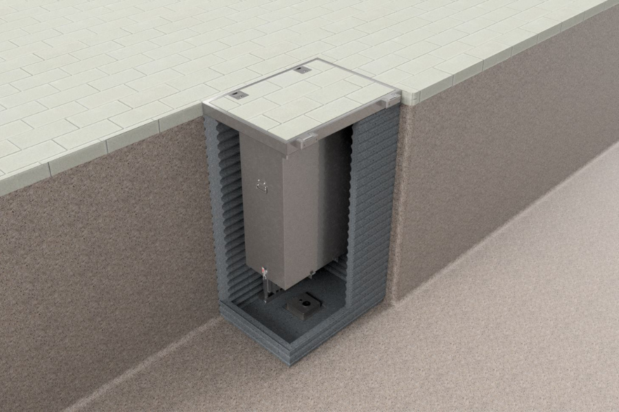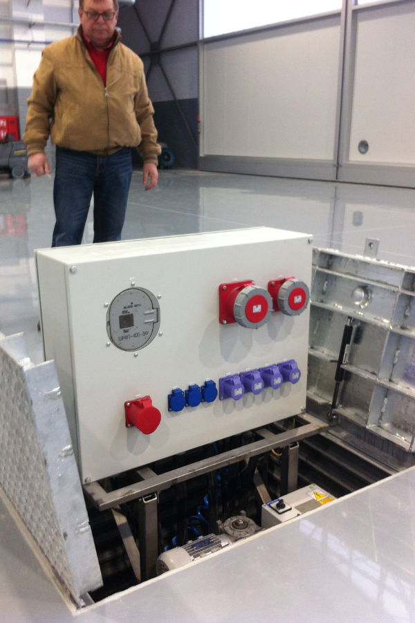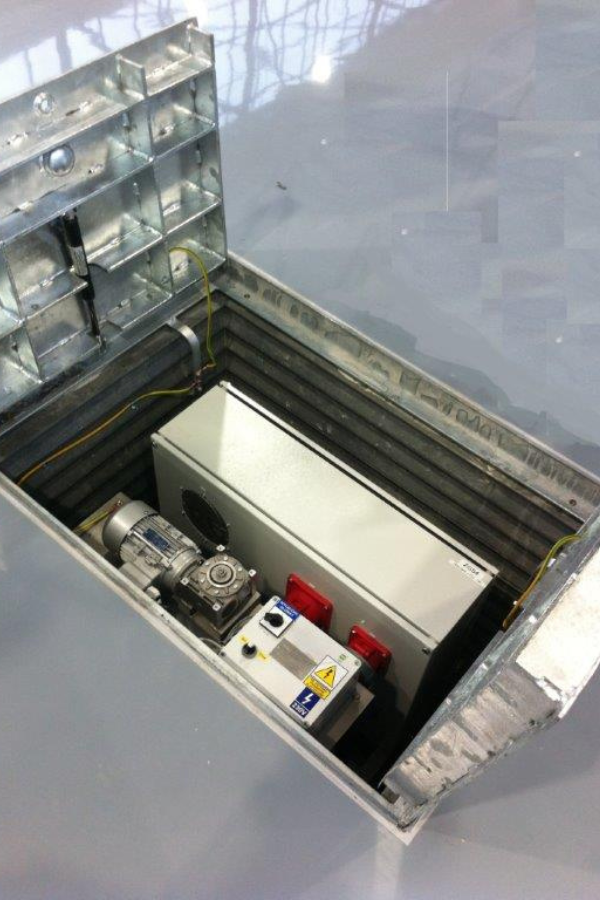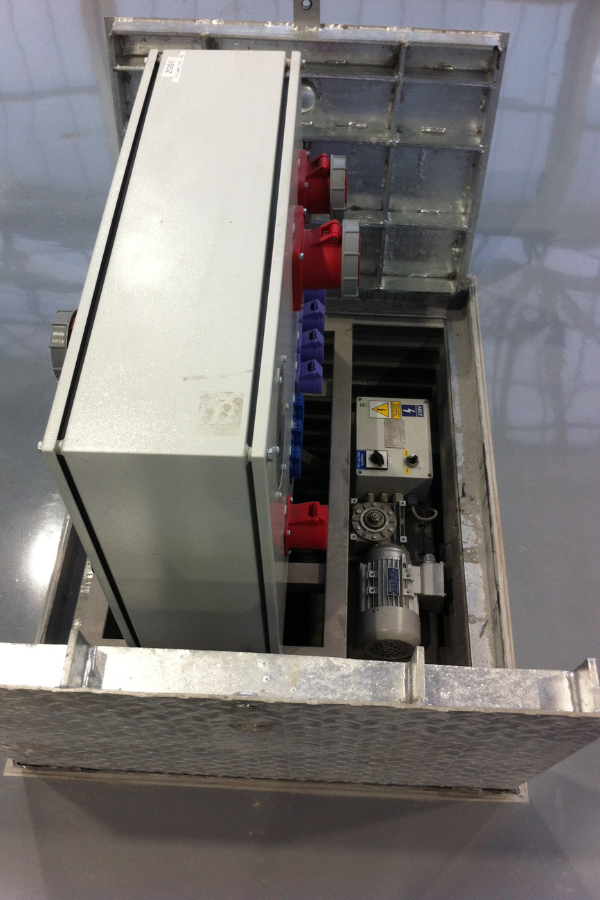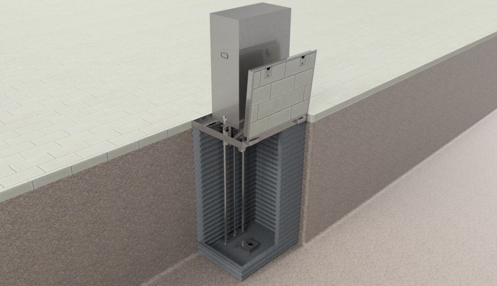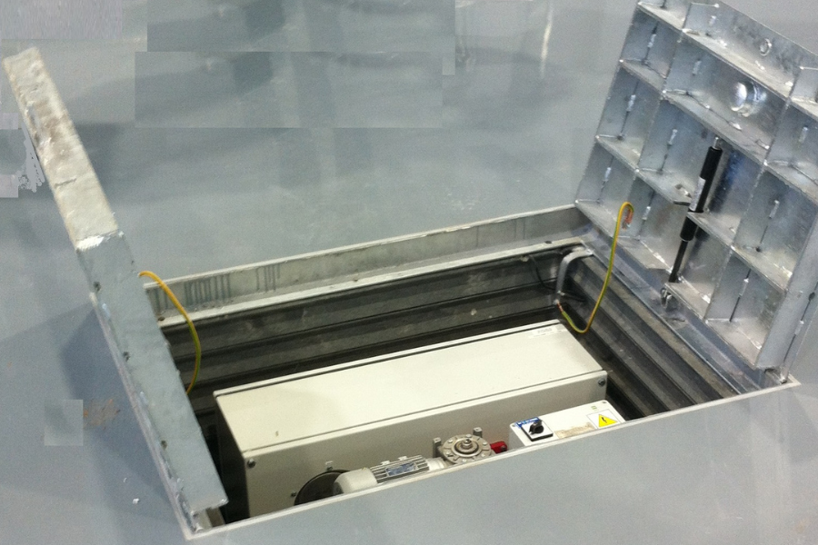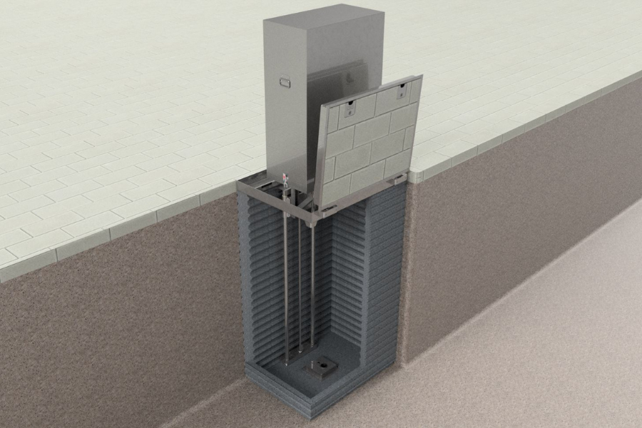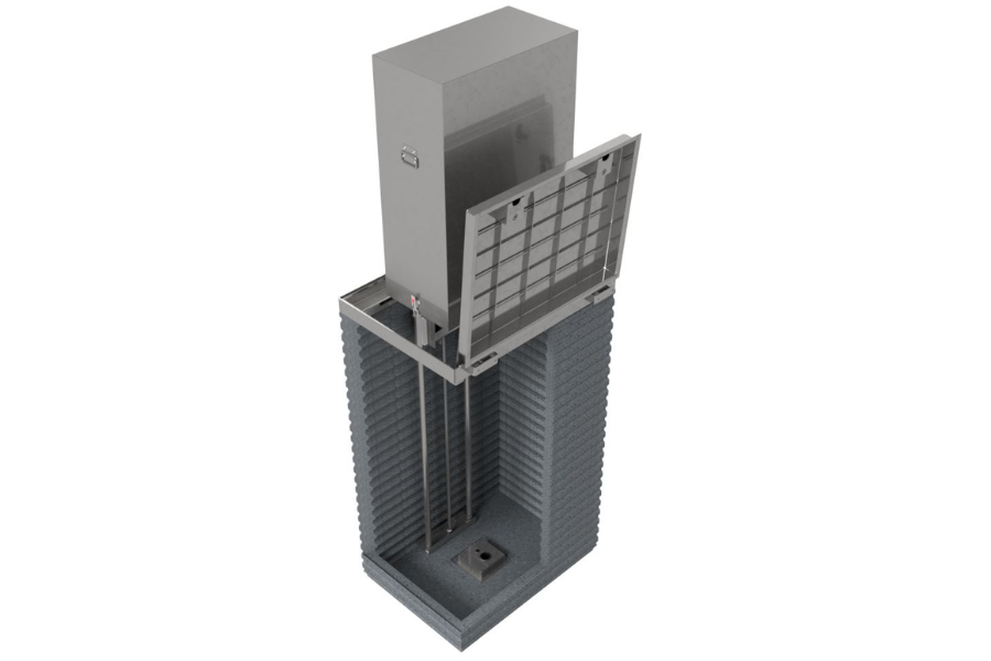 Modułowe studnie z windami ze stali nierdzewnej umożliwiają bezpieczne i estetyczne ukrycie szaf sterujących lub rozdzielni, z indywidualnym dopasowaniem i sterowaniem ręcznym lub elektrycznym.