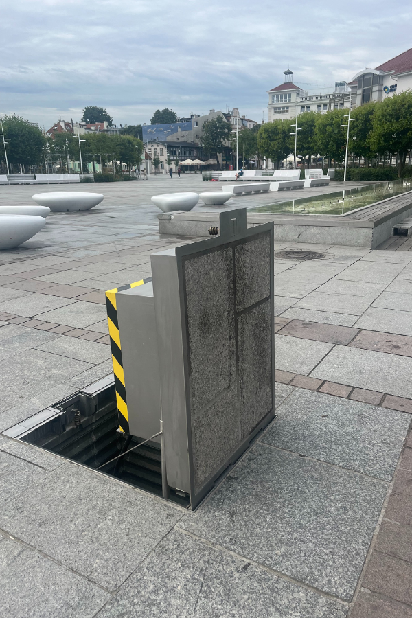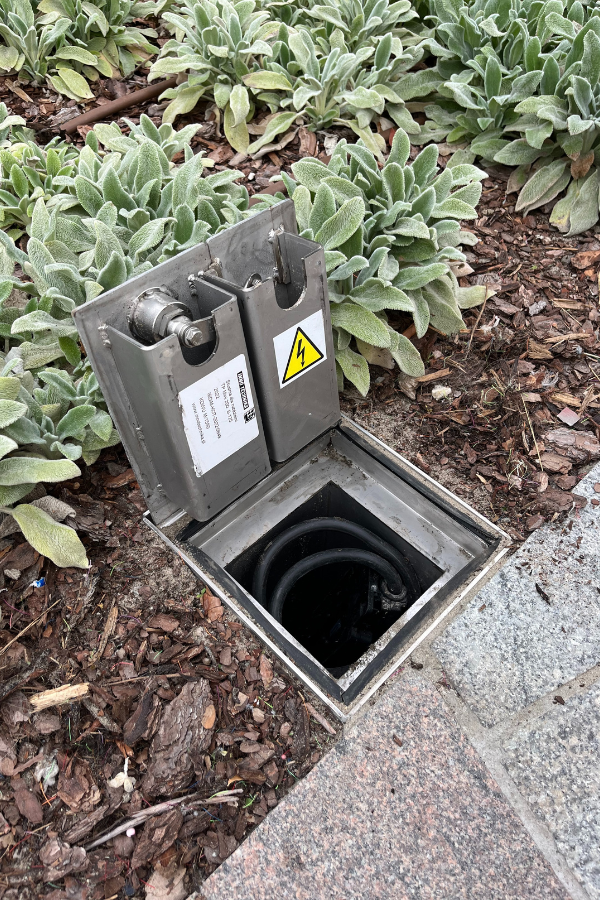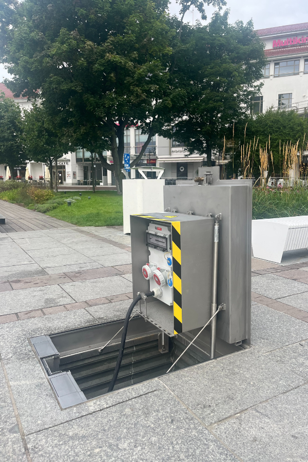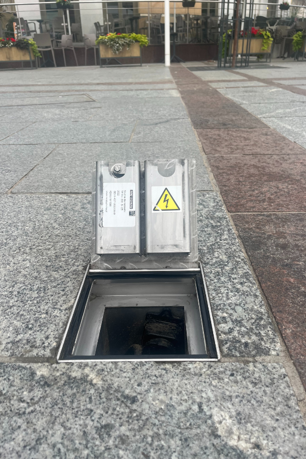 W tej realizacji Innotechnika dostarczyła podziemne rozdzielnie zasilające oraz szafy sterujące, które pracują w sposób, który idealnie pasuje do przestrzeni publicznej: na co dzień są schowane całkowicie pod ziemią, a dostęp do zasilania pojawia się wtedy, kiedy jest potrzebny.