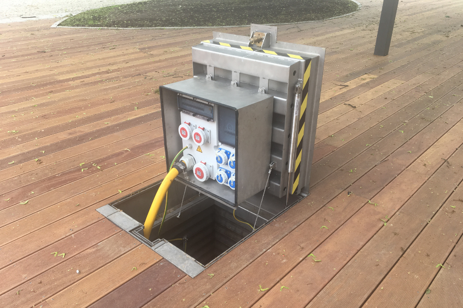 Nasze produkty zostały wkomponowane w przestrzeń placu, dzięki czemu są niemal niewidoczne, a jednocześnie zapewniają niezawodne zasilanie dla oświetlenia, fontanny i wydarzeń plenerowych.